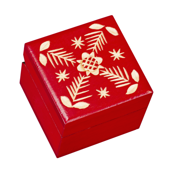 This box was commissioned by us and made by a local Polish craftsman specializing in hand carving using wood chisels. Features a small sunflower, leaves and branches that make it look like a snowflake. Assorted Colors.