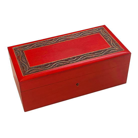 Like our A-3, but taller to accommodate lock & key. Brass inlay, assorted colors: red, blue.