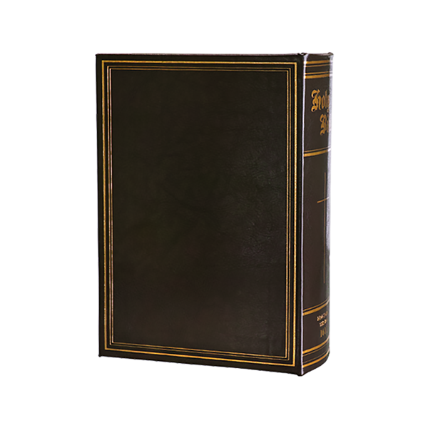 Holy Bible book safe box with lock & key, gold foil, in a natural brown. The English version of 1611 by King James. Design by Michael Kowalski