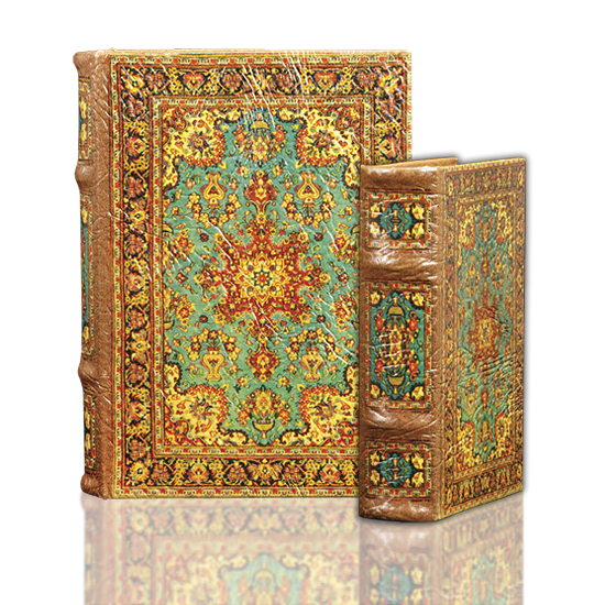 Shangri-La is a fictional place described in the 1933 novel Lost Horizon by British author James Hilton. This book features arabesque tapestry pattern with harmonious colors offset by the  turquoise center fill. A set consisting of two books; one large, one small.