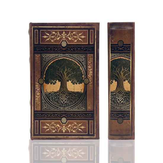 Decorative Tree of Life book box, brown, green, and natural colors. Symbolizes eternity, immortality, and the relationships of all life.
