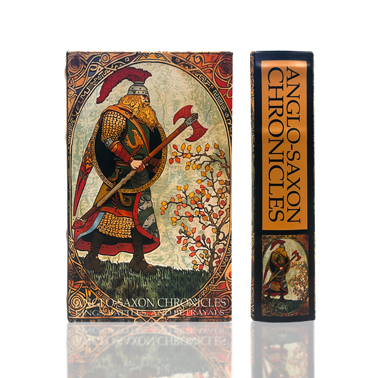 Medium book featuring an armored Viking with axe and shield. With title, "Anglo-Saxon Chronicles: Kings, Battles, and Betrayals", based on Norse Mythology.