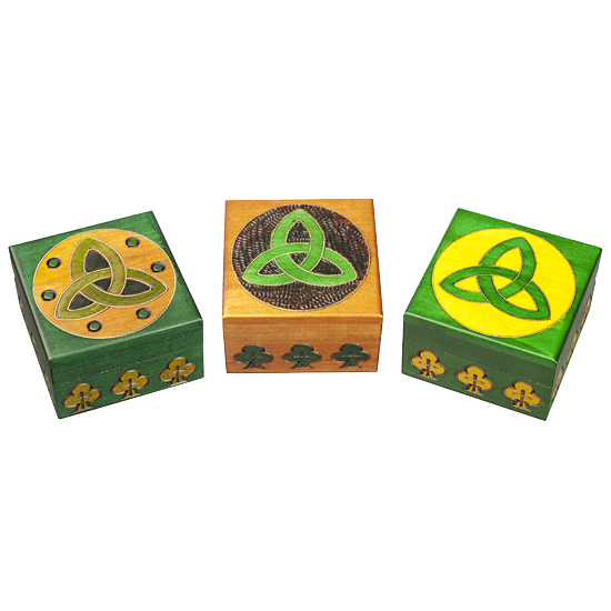 Brass metalwork, red felted bottom, assorted colors, trinity design.