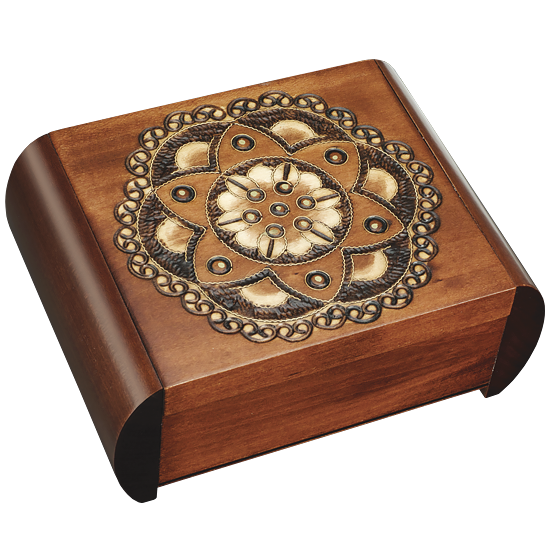 Secret version of our Chakra Luna Box, in a lovely shade of brown. Sides slide forward to open, features brass inlay. Original design by Teresa Witkowska.