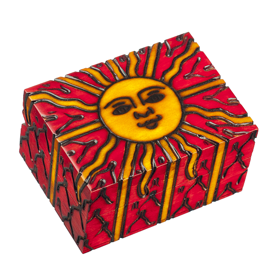 Our classic alchemist sun with long sun rays on deep patterned red background.