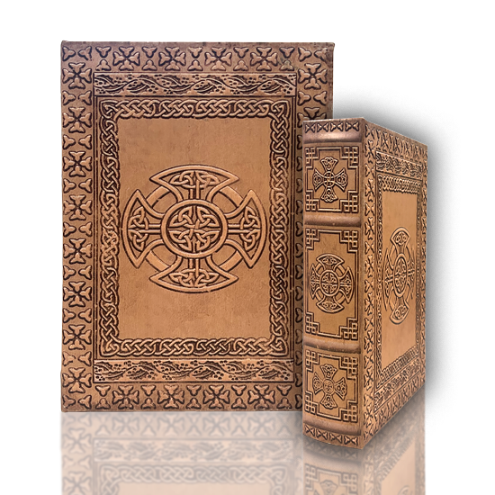 Ornate Celtic patterns and textures with 3D effect, made to resemble aged/tanned leather. Set of 2, Large and medium.