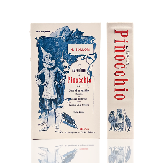 Based on the original book, "The Adventures of Pinocchio" written in 1883 by Italian author Carlo Collodi. 1889 edition, with watercolor illustrations by Carlo Chiostri, medium book.