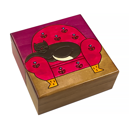 Adorable stylized cat sitting on sofa with great color arrangement in assorted colors with black and white cat. An EWB original, designed by Teresa Witkowska.