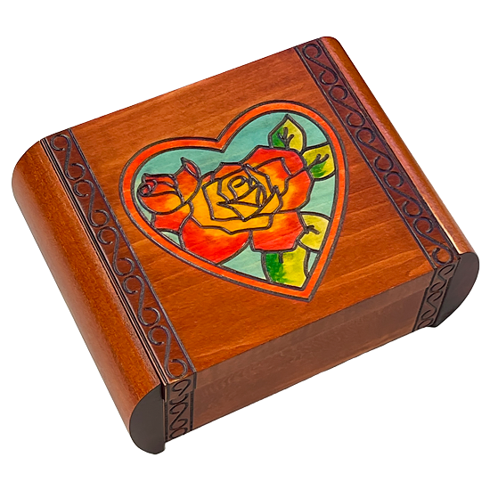 Rose on blue background, secret box. An EWB Original by Teresa.