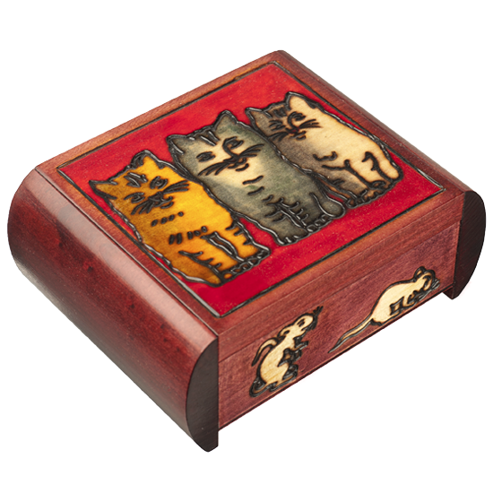 Secret version of our 3 cats box, sides slide forward to open.